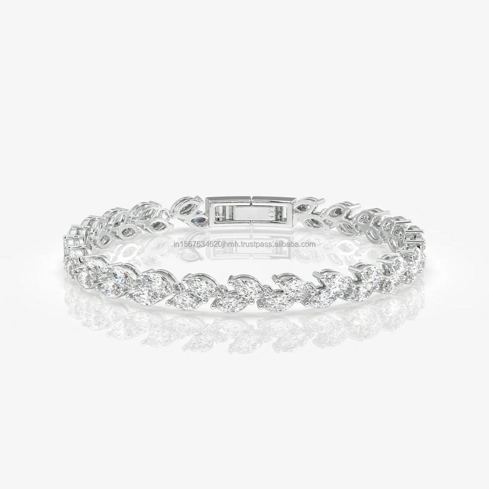 สร้อยข้อมือประดับเพชรแบบเต็มรูปแบบสีทองสไตล์วินเทจของผู้หญิงหรูหราได้รับการออกแบบให้เป็นแผ่นป้องกันลายดอกไม้ประดับอัญมณีโรเดียม