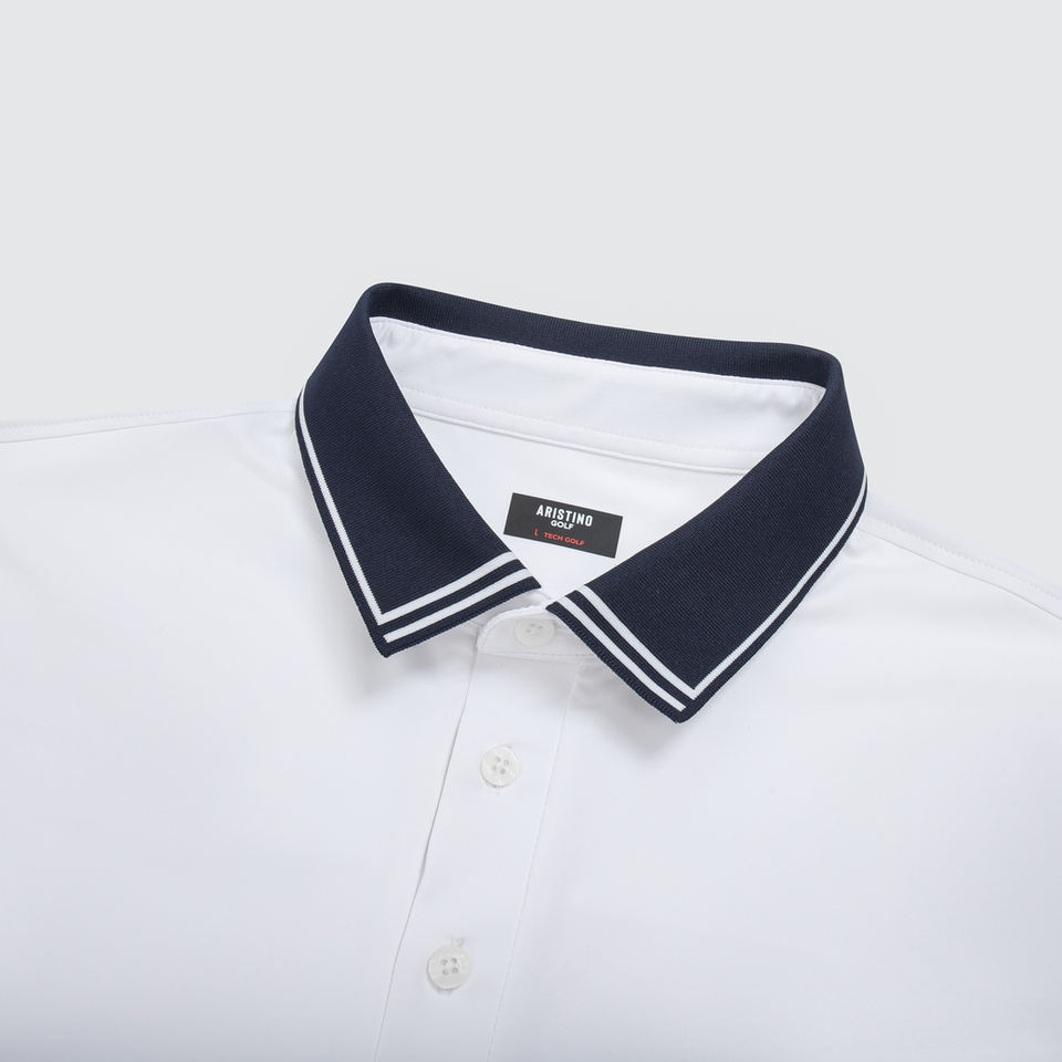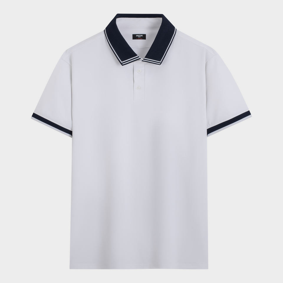Aristino เสื้อกอล์ฟผู้ชายสีขาว APSG23AS2-Smart ลำลองแขนสั้นผ้าโพลีเอสเตอร์15% ผ้าสแปนเด็กซ์เสื้อออกแบบสีทึบ