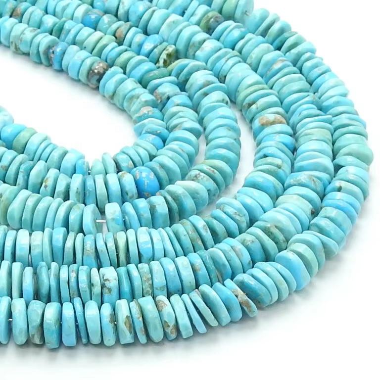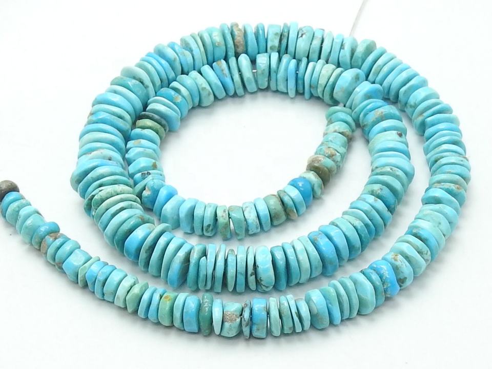 Arizona สีเทอร์ควอยซ์ยางล้อเหรียญขนาด16นิ้วขัดเงาเรียบขนาด5-8มม. โดยประมาณลูกปัดหินสีฟ้าเครื่องประดับของบุคคลที่สาม