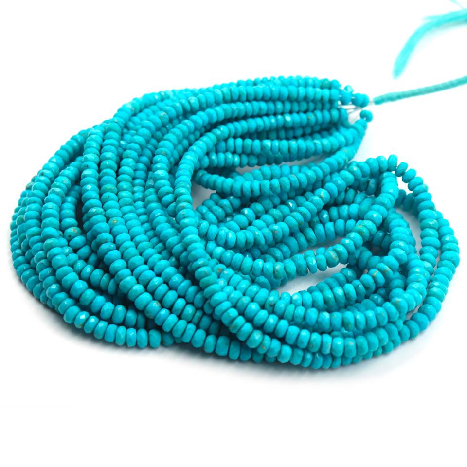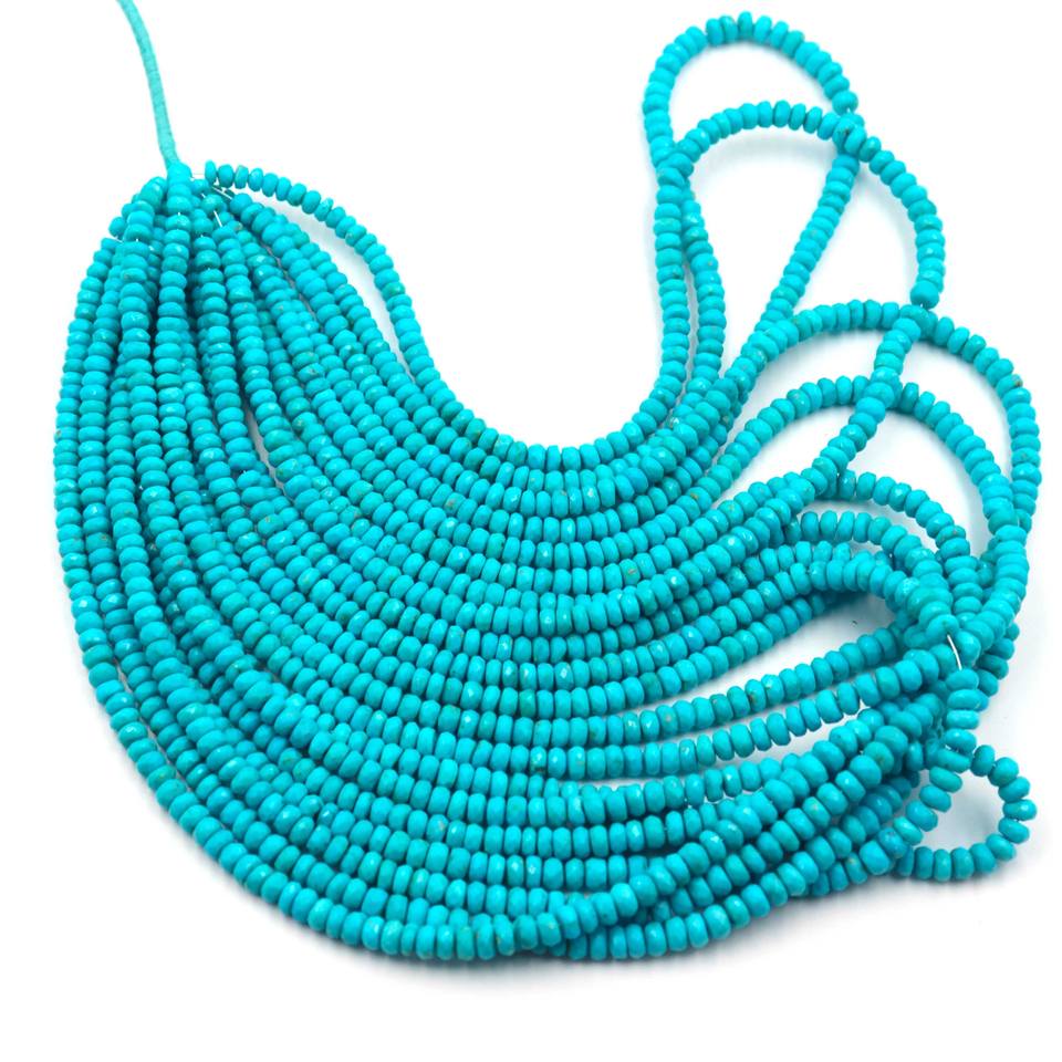 ลูกปัดเทอร์ควอยซ์ทรงรอนเดลล์จากแอริโซนา ลูกปัดเทอร์ควอยซ์ธรรมชาติ ขนาด 4-5 มม. ความยาว 16 นิ้ว ลูกปัดพลอยเทอร์ควอยซ์สีน้ำเงิน สำหรับทำเครื่องประดับ