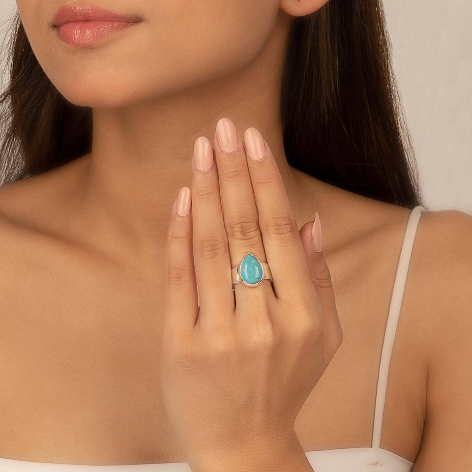 แหวนเงินแท้สีเงินแท้925อัญมณีสีเทอร์ควอยส์ Arizona ในรูปลูกแพร์