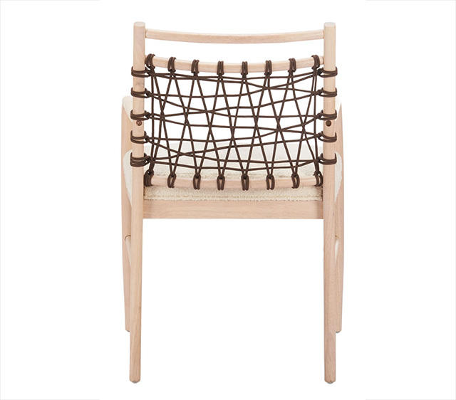 เก้าอี้รับประทานอาหารริมแขนเก้าอี้เลานจ์สำหรับรับประทานอาหารทำจากไม้สักธรรมชาติส่วนประกอบปลอดภัยเชือกสีเหลืองนำโชคอบอุ่นไม้โอ๊คเป็นระเบียบเรียบร้อย