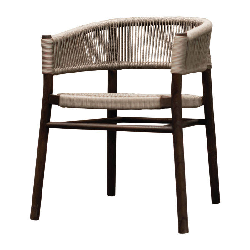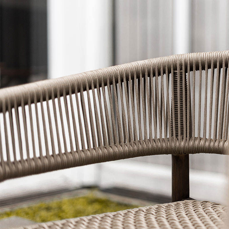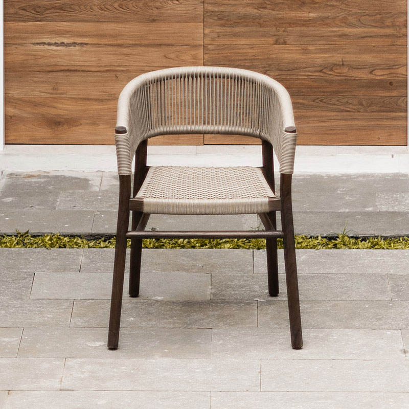 เก้าอี้นวมที่ผสมผสานระหว่างเชือกถักทอพร้อมสีเคลือบสีน้ำตาลเข้ม เหมาะสำหรับใช้ภายในและภายนอกอาคาร