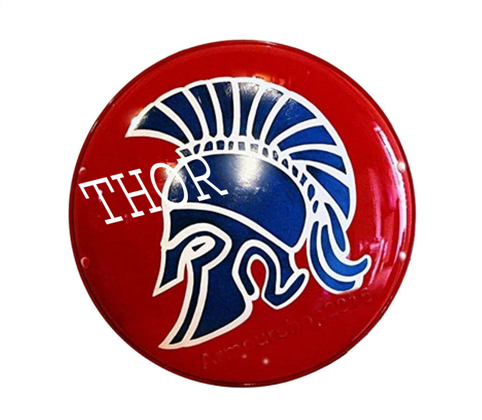 SPARTAN larp โล่กลมสีแดงยุคกลางแบบคลาสสิกเกราะป้องกันแบบมือถือสีแดงยุคกลางโลหะชุบ