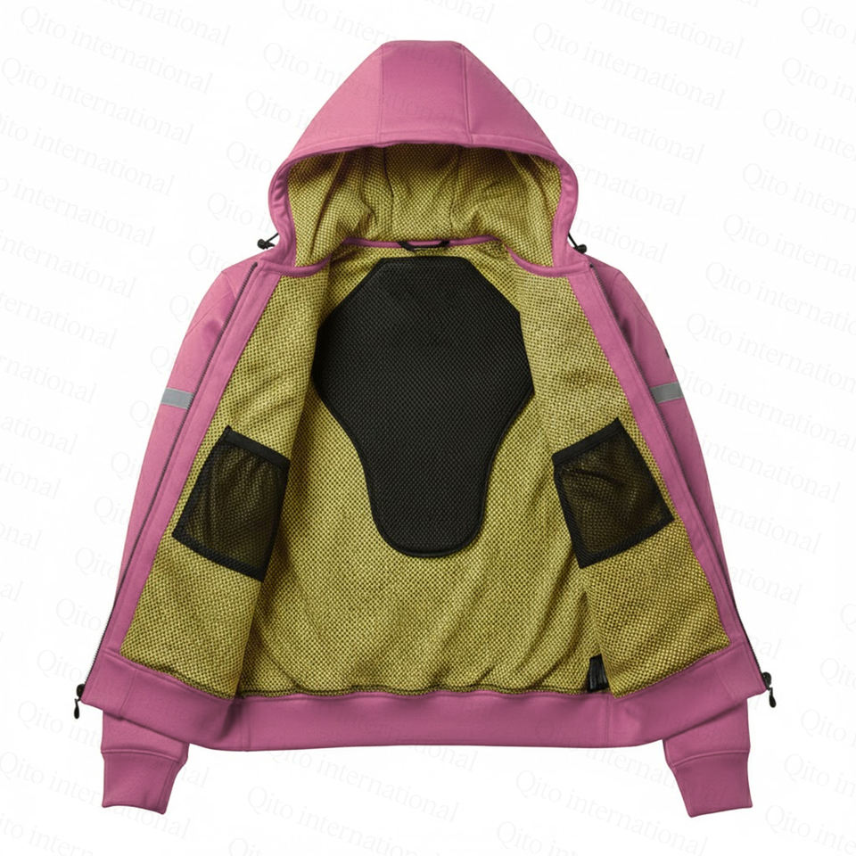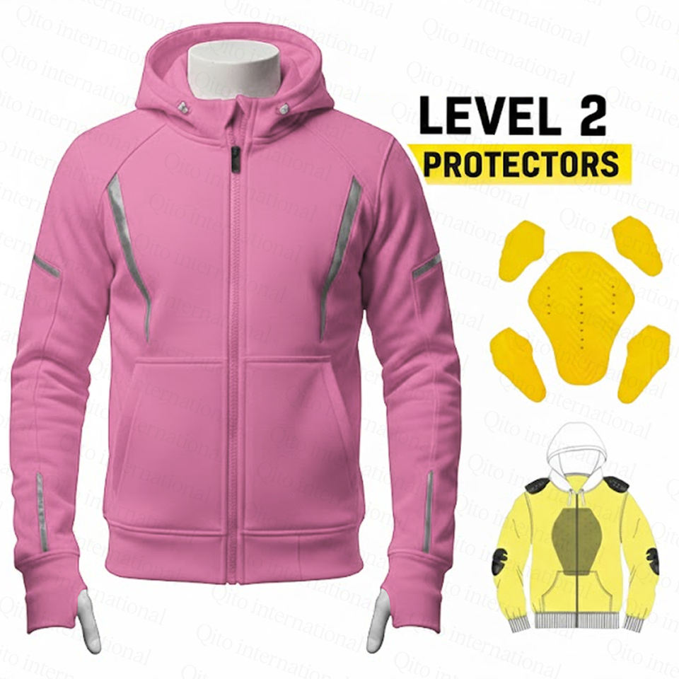 เสื้อฮู้ดมอเตอร์ไซค์แบบมีเกราะป้องกัน บุด้วยเคฟลาร์อะรามิด ซิปสะท้อนแสง พร้อมแผ่นป้องกันระดับ CE 2
