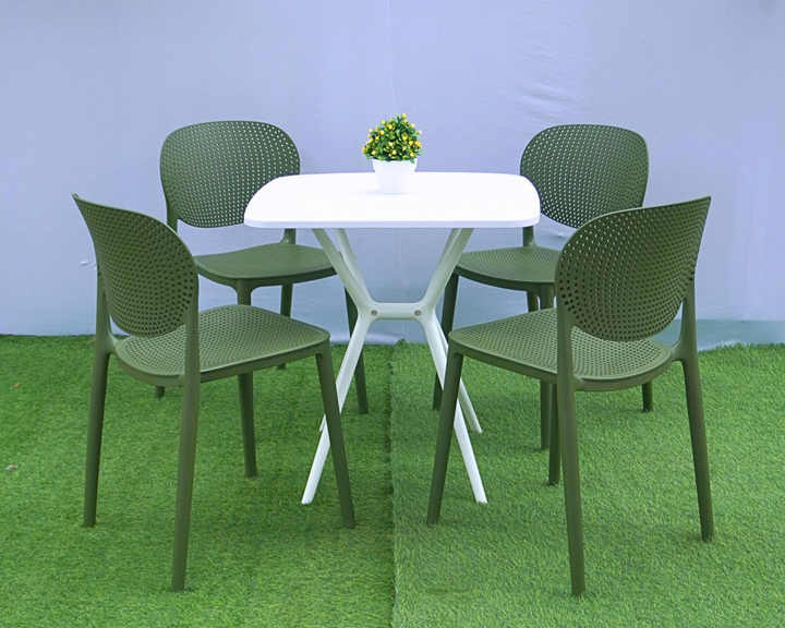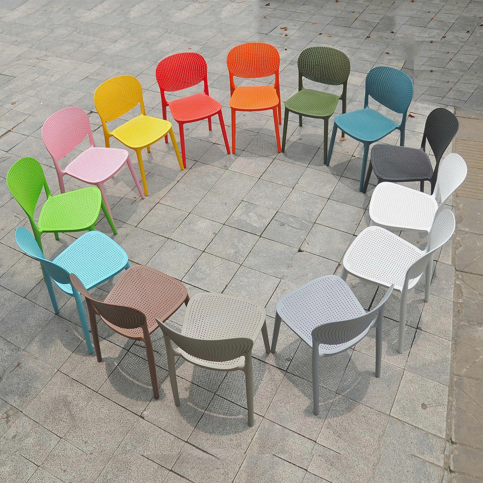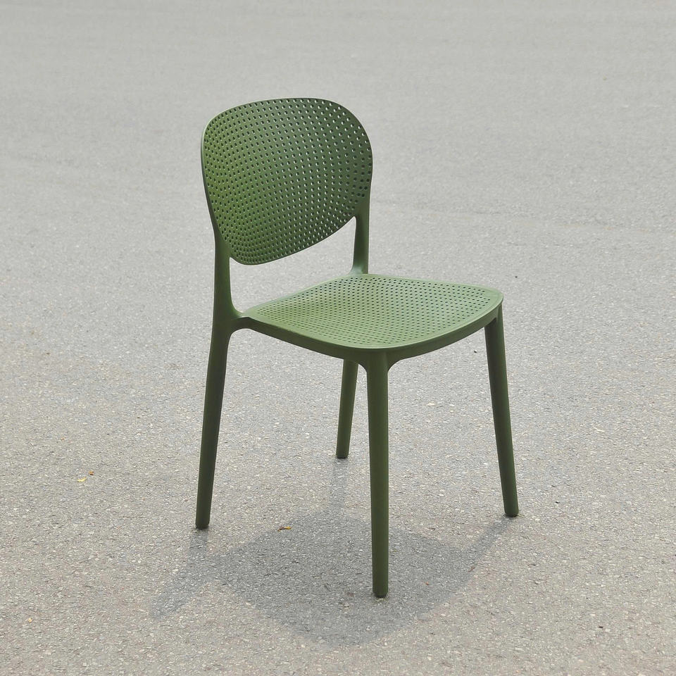 เก้าอี้พลาสติกขึ้นรูปทรงทันสมัยสีเขียวขี้ม้าสำหรับสวน คุณภาพสูง กันน้ำ ทนทาน นั่งสบาย และสามารถวางซ้อนกันได้ เหมาะสำหรับใช้งานกลางแจ้ง
