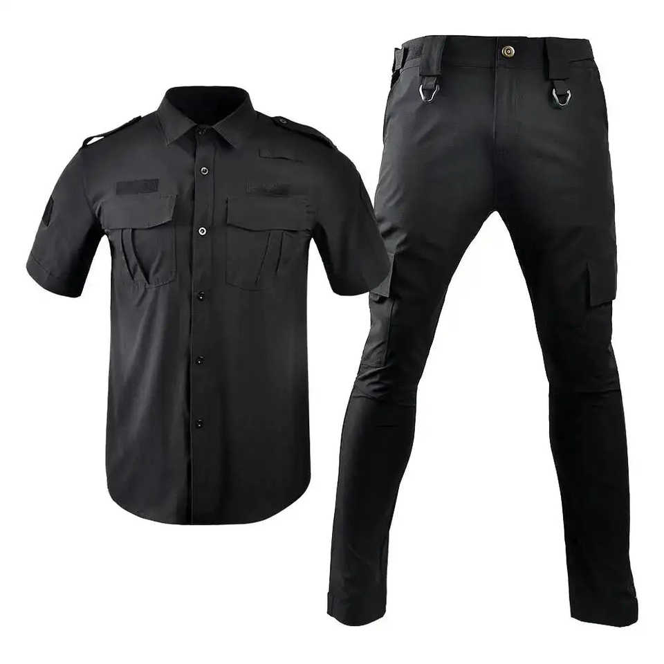 ชุดยูนิฟอร์มรปภ.สีเขียวขี้ม้าสำหรับผู้ชาย เสื้อและกางเกงแบบยุทธวิธี ผลิตจากโพลีเอสเตอร์ผสมคอตตอน เหมาะสำหรับงานกลางแจ้งและล่าสัตว์