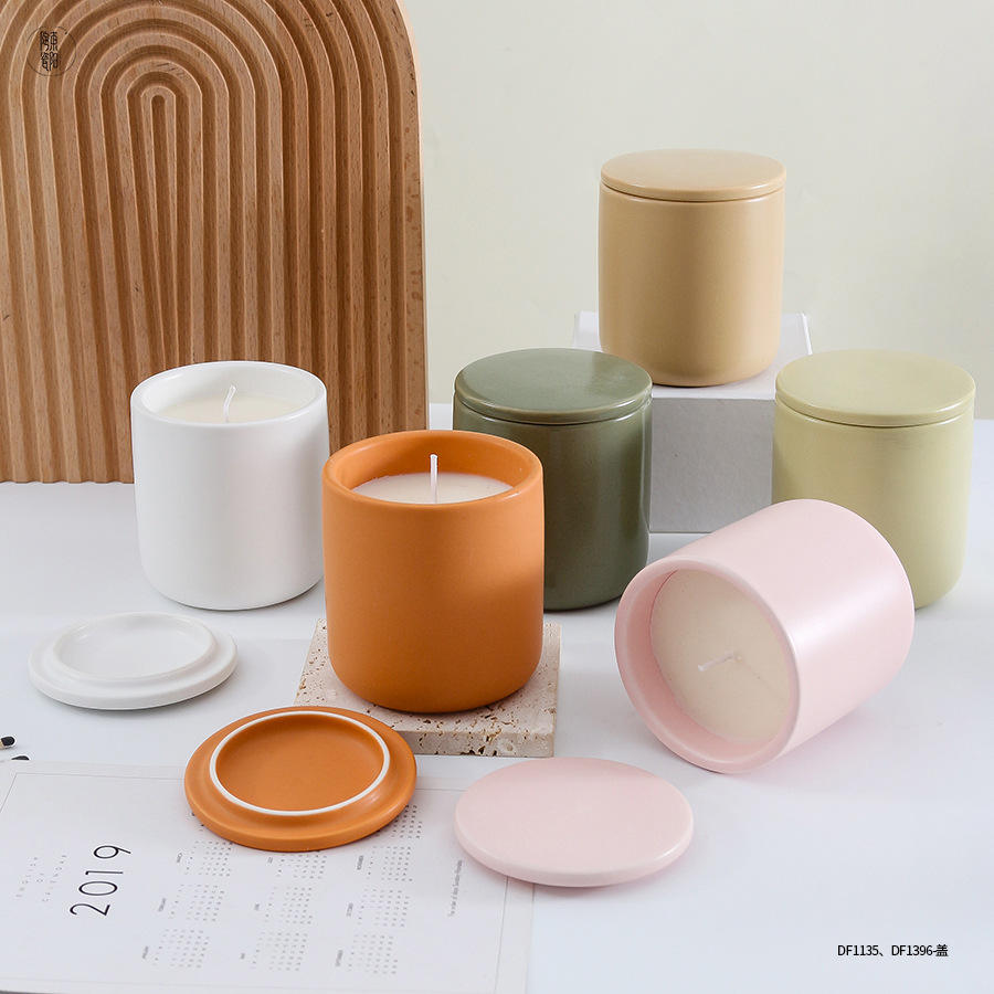 ถ้วยเทียนเซรามิกทรงกระบอกพร้อมฝาปิด สไตล์นอร์ดิก สำหรับตกแต่งบ้าน ของขวัญ DF1135 DF1396