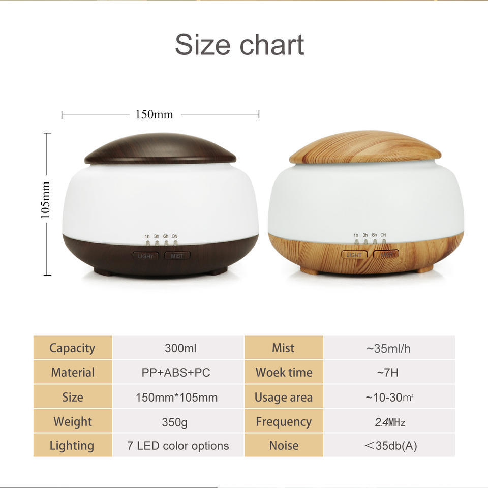 เครื่องกระจายกลิ่นอโรมาขนาดเล็ก 300 มล. เครื่องเพิ่มความชื้นแบบอัลตราโซนิกไฟฟ้าพร้อมตัวตั้งเวลาสำหรับอโรมาเธอราพี
