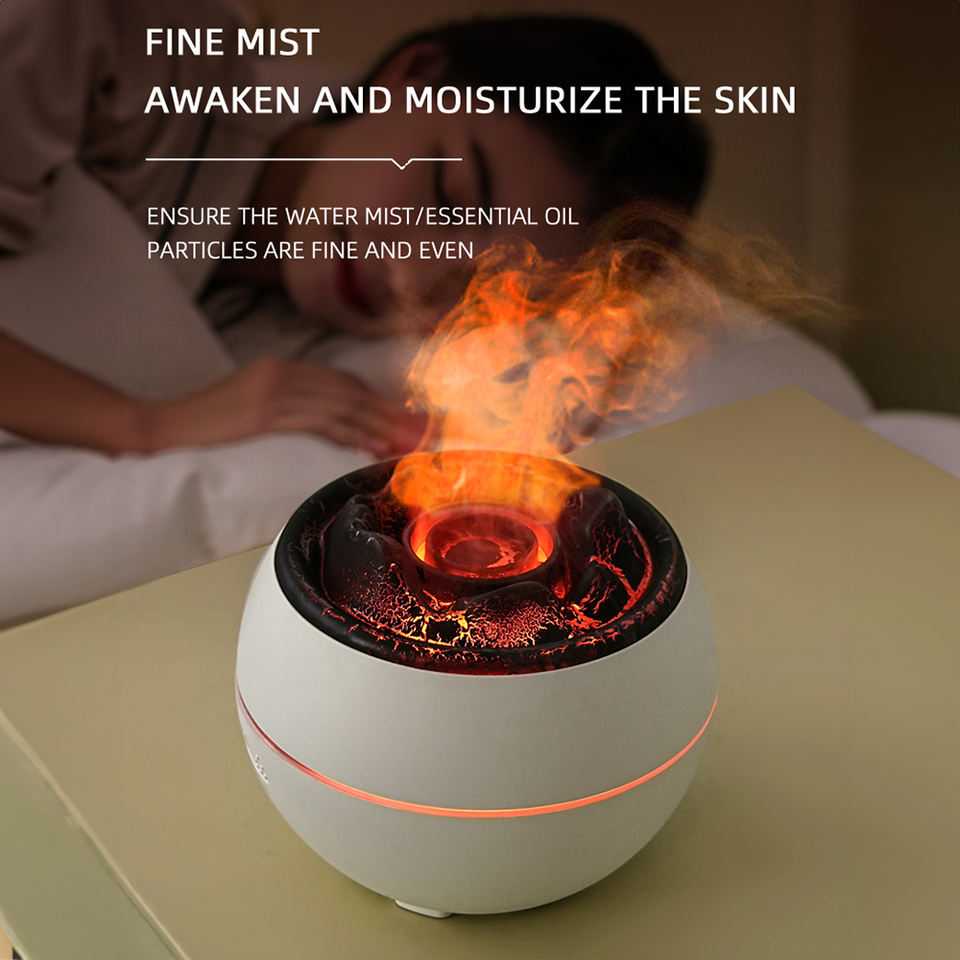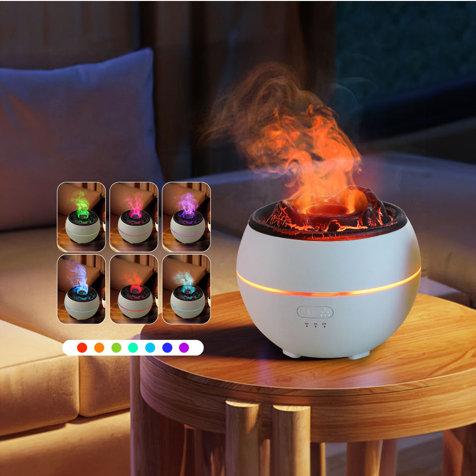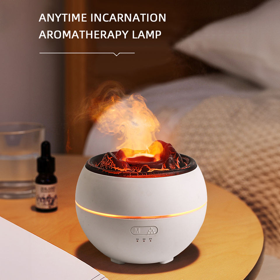 เครื่องกระจายกลิ่นหอมโคมไฟไฟอัลตราโซนิกน้ํามันหอมระเหยเปลวไฟอากาศความชื้นเครื่องกระจายกลิ่นหอมภูเขาไฟสําหรับบ้านสํานักงาน