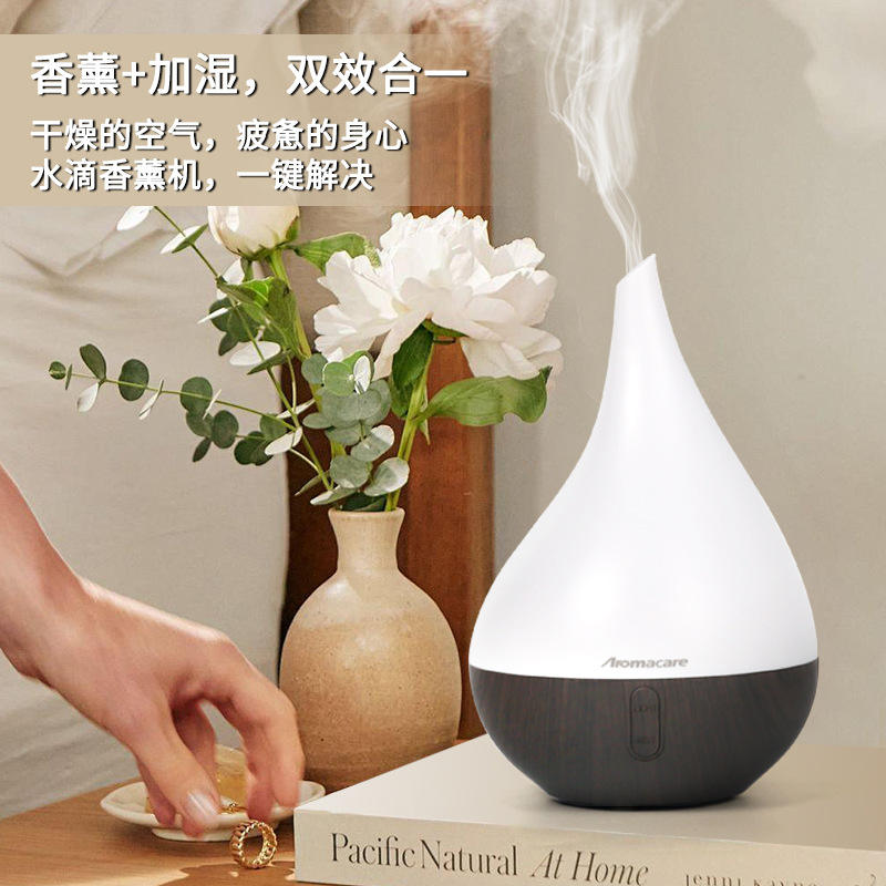 เครื่องกระจายกลิ่นน้ำมันหอมระเหยอโรมาแคร์ 250 มล. เครื่องเพิ่มความชื้นอัลตราโซนิกสำหรับบ้านและโต๊ะทำงาน เครื่องพ่นไอน้ำอโรม่า สีขาว