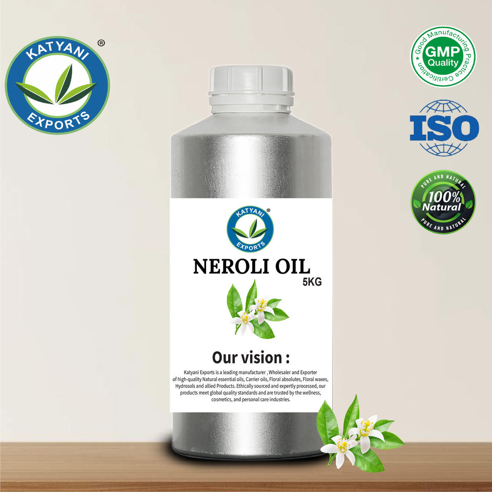 น้ำมันหอมระเหยเนโรลีเกรดอโรมาเธอราพี (ซิตรัส ออเรนเทียม วาร์. แวร์) อะมาร่า) น้ำมันหอมระเหยกลั่นด้วยไอน้ำสำหรับอโรมาเธอราพี ผู้ส่งออกในอินเดีย