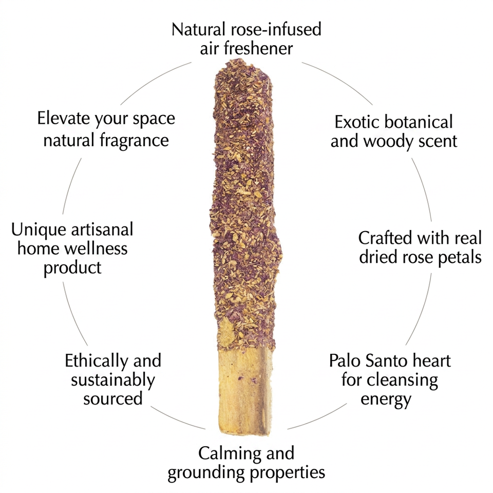 ธูปไม้ปาโลซานโตหอมพร้อมกุหลาบเคลือบและเศษไม้เหนียวจากเปรู