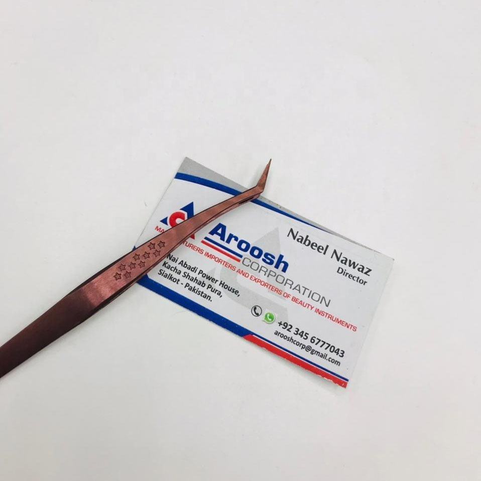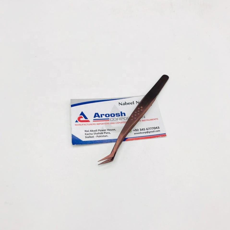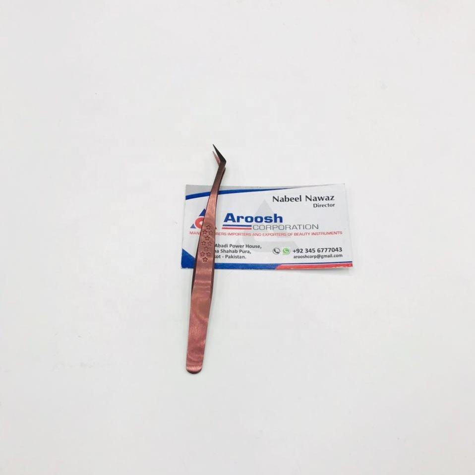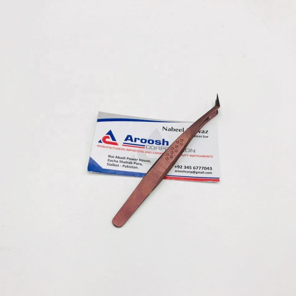 แหนบต่อขนตา Aroosh Corp สีโรสโกลด์ ลายดาว ทำจากสแตนเลส ทนทาน จับได้แน่น ด้ามจับแบบเพชร ขนาด 11 ซม. ปลายแหลม