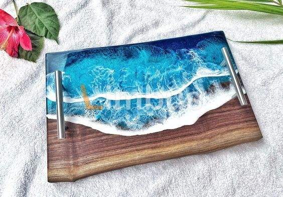 ถาดไม้เรซินอีพ็อกซี่2024ถาดอาหารเย็นถาดอาหารมื้อเย็นถาดอาหารมื้อเช้าสำหรับโรงแรมอาหารจานซูชิเหมาะสำหรับงานปาร์ตี้