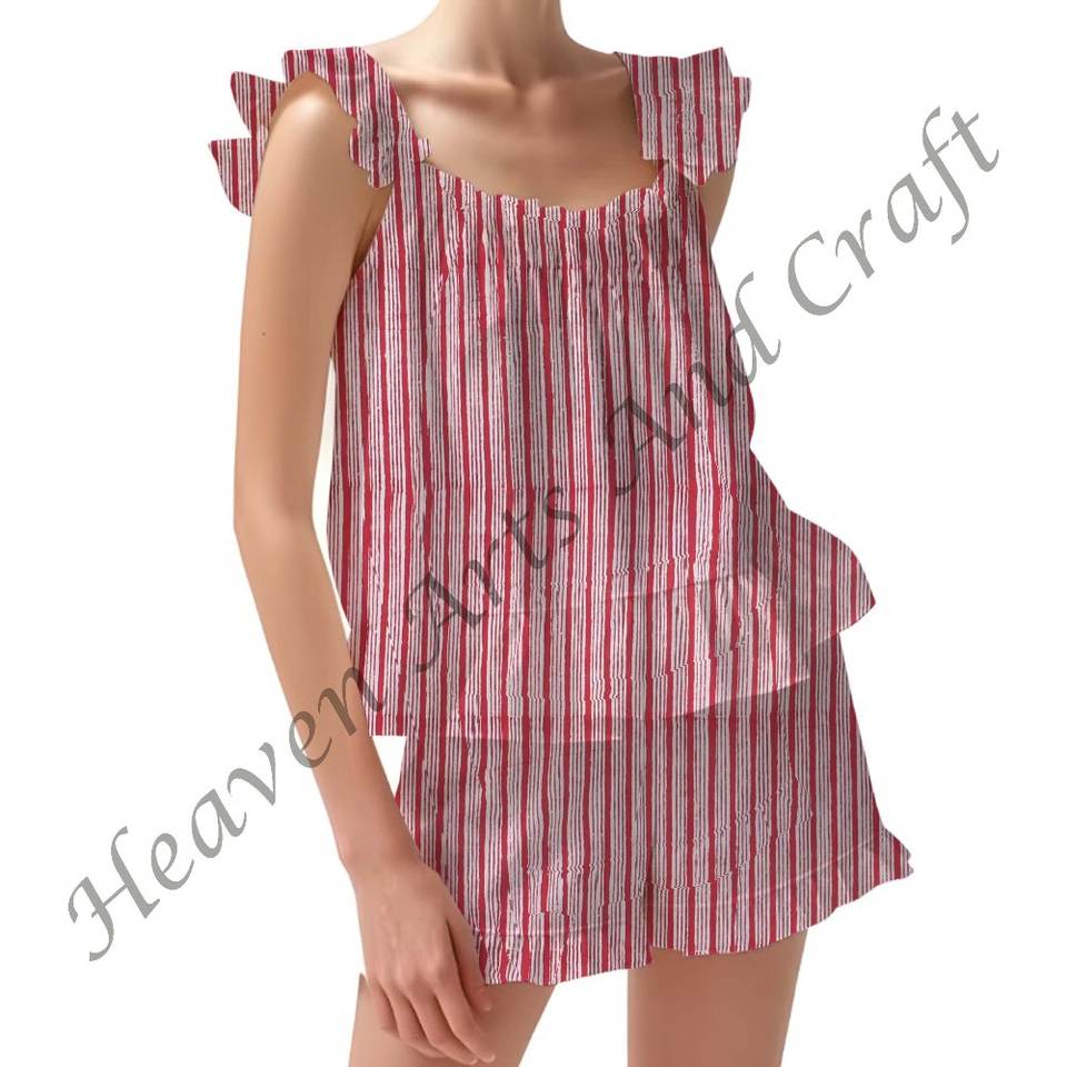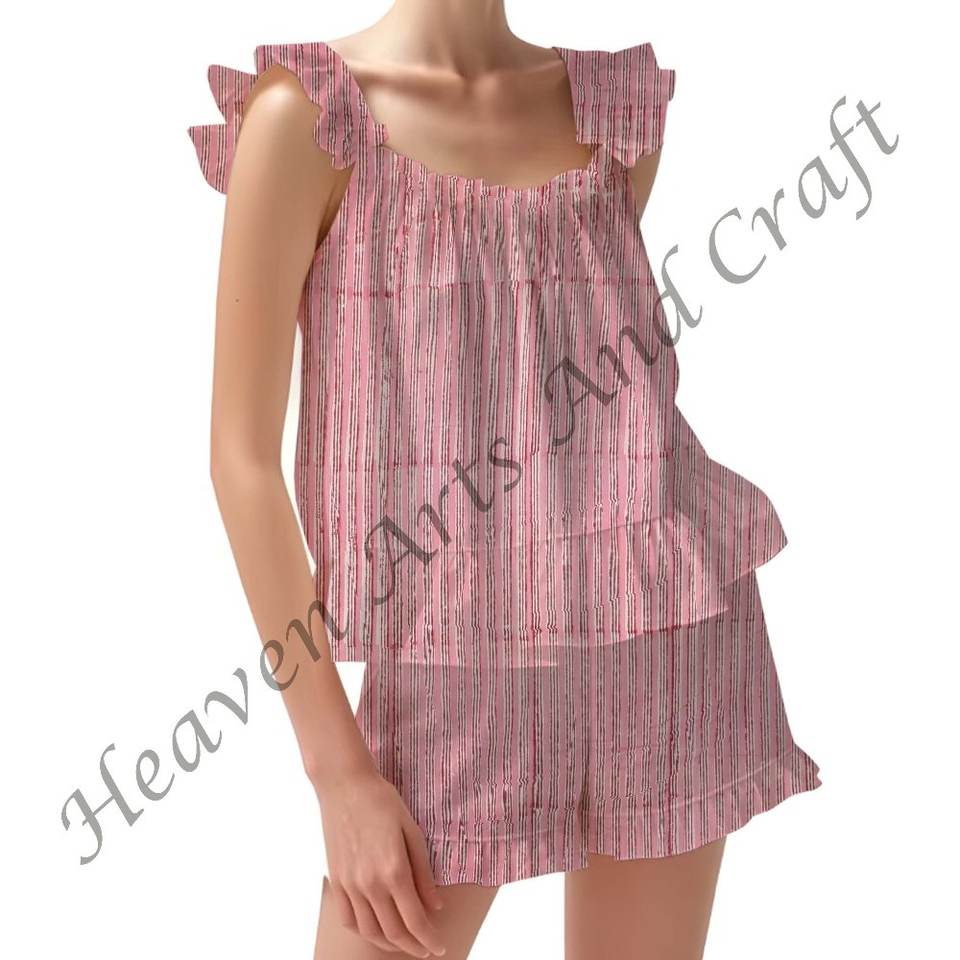 ชื่อผลิตภัณฑ์:ชุดนอนผ้าฝ้าย100% พิมพ์ลายมีระบาย