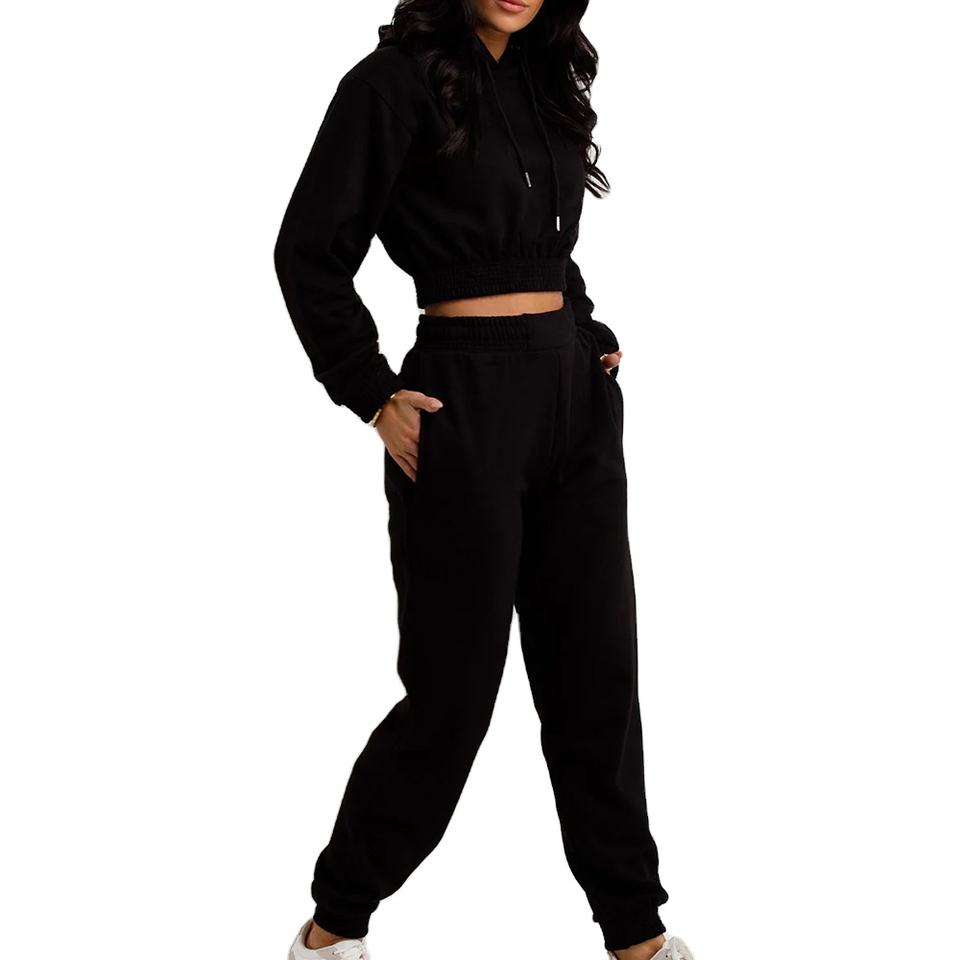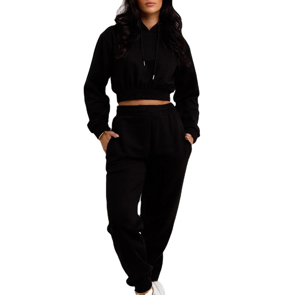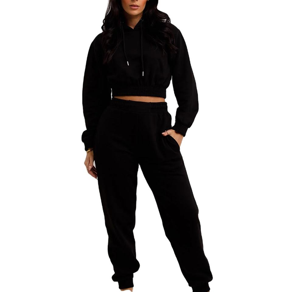 ชุดครอป2ชิ้นสำหรับผู้หญิงมาใหม่เซ็ตชุดวอร์มเนื้อผ้าคอตตอนชุดวอร์ม100% สำหรับใส่วิ่งชุดวอร์ม2026