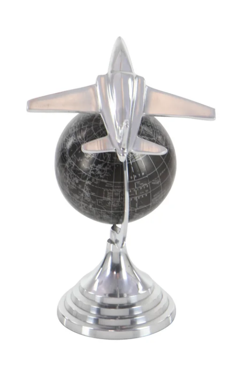 อาร์ตเดคโคอลูมิเนียมลูกโลกสีเทาลิตตันเลนเงินตกแต่งแผนที่โลกเครื่องบินตกแต่งบ้านหัตถกรรมโลหะโต๊ะ