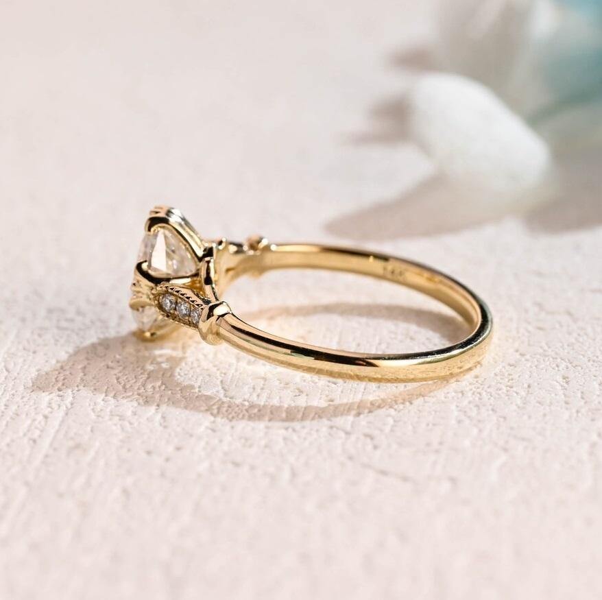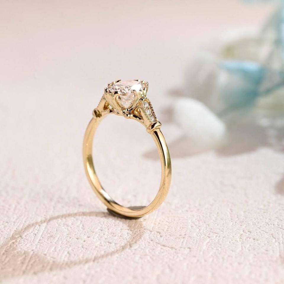 แหวนเพชรทรงรีอาร์ตเดโค 1.50 กะรัต แหวนหมั้นแบบโบราณ CVD ทองคำขาว 14K แหวนแต่งงาน แหวนวันครบรอบ