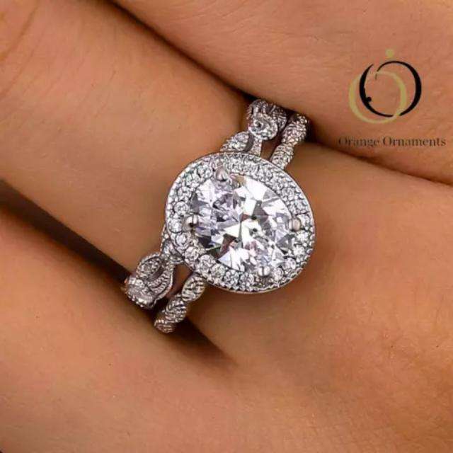 ชุดแหวนแต่งงานประดับเพชรแบบทรงกลมประดับห้องแล็บสุดแสนสวยพร้อมไพลินชุบทองเงินสเตอร์ลิง