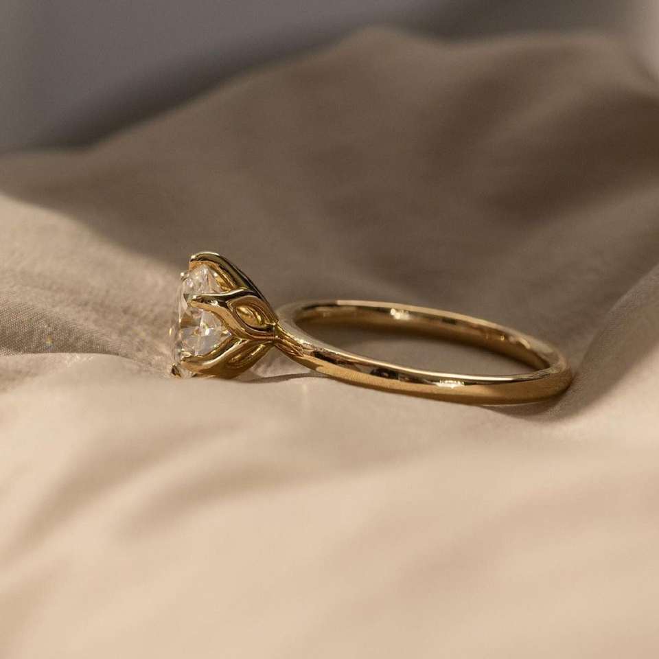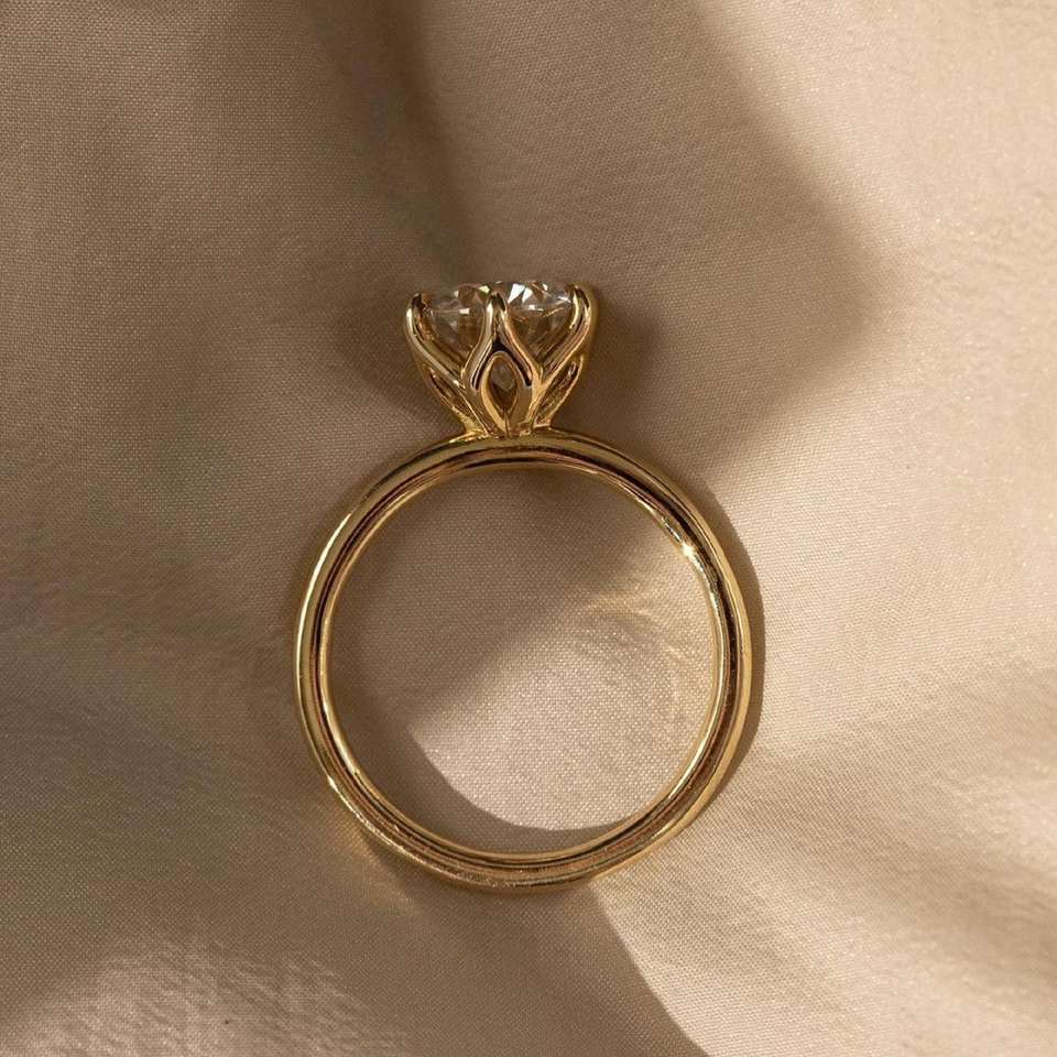 แหวนเพชรโมอิสทรงกลม7มม. สไตล์อาร์ตเดคโคประดับด้วยดอกไม้ดอกทิวลิปมีหกแฉกเหมาะสำหรับโอกาสพิเศษ