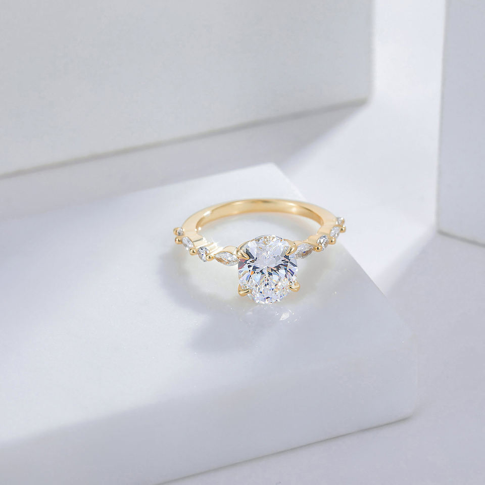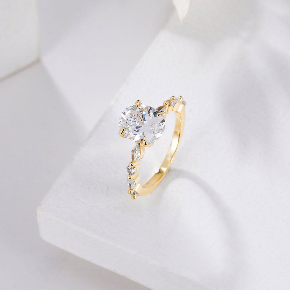 ชื่อผลิตภัณฑ์:แหวนเพชรโซลิแทร์ทรงรีสีทอง18K