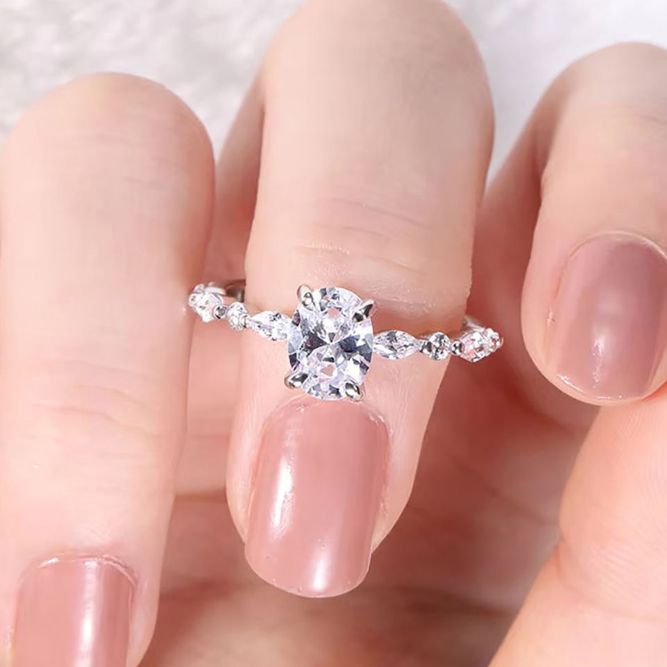 แหวนเพชรรูปวงรีทรงตัดโดยใช้เพชรเม็ดเดี่ยว