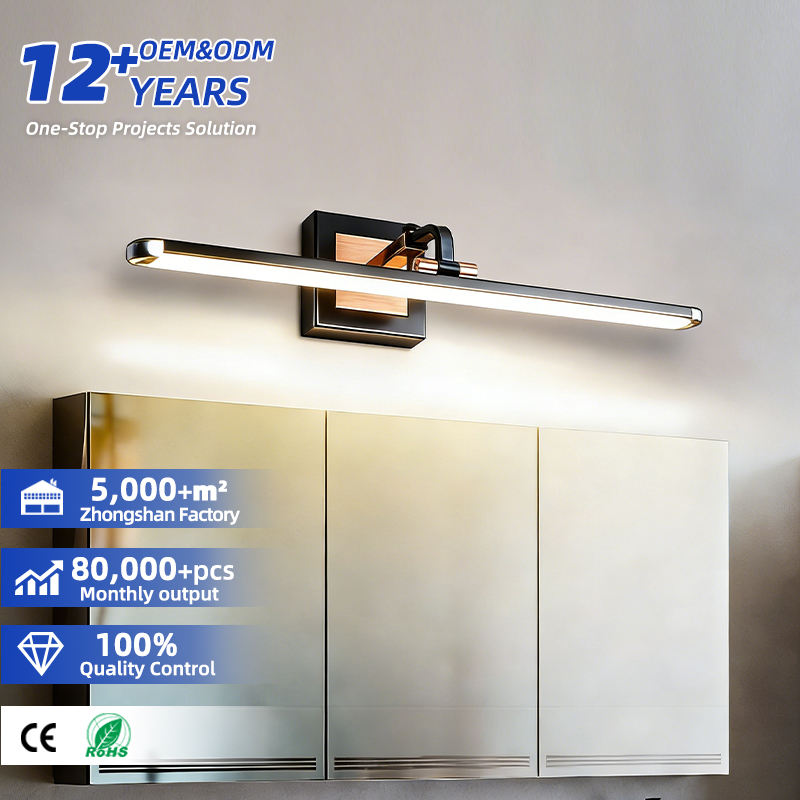 โคมไฟติดผนัง LED ปรับได้ โครงสร้างเหล็กและอะลูมิเนียม โคมสีขาว อุณหภูมิสี 3000K/4000K/6000K สำหรับห้องน้ำ/ใช้ภายในอาคาร