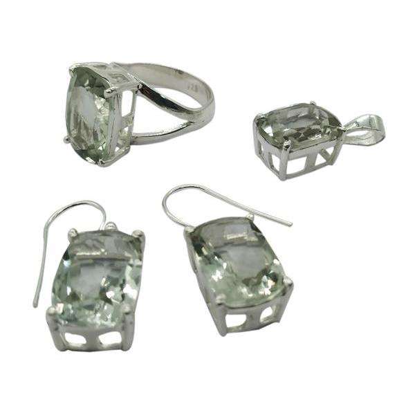 ชุดเครื่องประดับ925พลอยสีเงินประดับพระราชวังด้วยหินอเมทิสต์สีเขียว