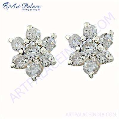 อาร์ต พาเลซ ฟลาวเวอร์ สไตล์ คิวบิกเซอร์โคเนียต่างหูพลอยเงิน เครื่องประดับห่วงแฟชั่น