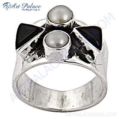 ศิลปะวังมีสไตล์เป็นเอกลักษณ์สีดำนิลและแหวนเงินมุกสำหรับปาร์ตี้