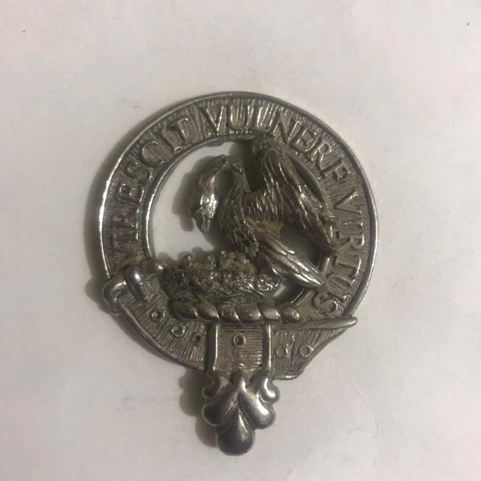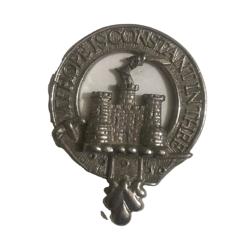 ตราสัญลักษณ์ตระกูลสก็อตแลนด์แบบดั้งเดิม ทำจากดีบุก สำหรับตระกูลแมคโดนัลด์แห่งแคลนราแนลด์