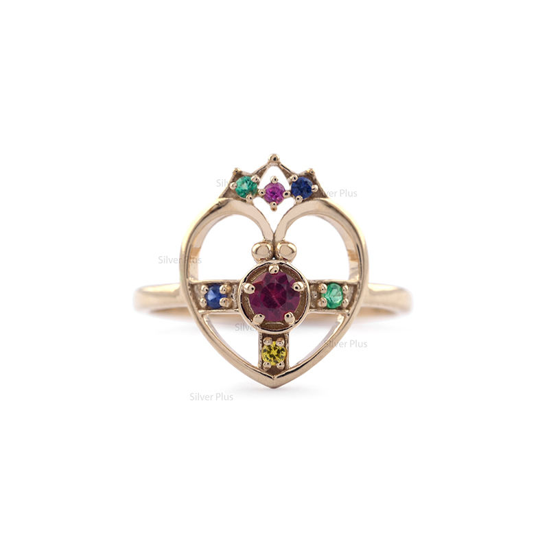 แหวนไพลินหลายสีทองสัญลักษณ์สัญลักษณ์สัญลักษณ์18K แหวนทองคำแท้จากผู้ผลิตอินเดียผลิตใน10K/14K