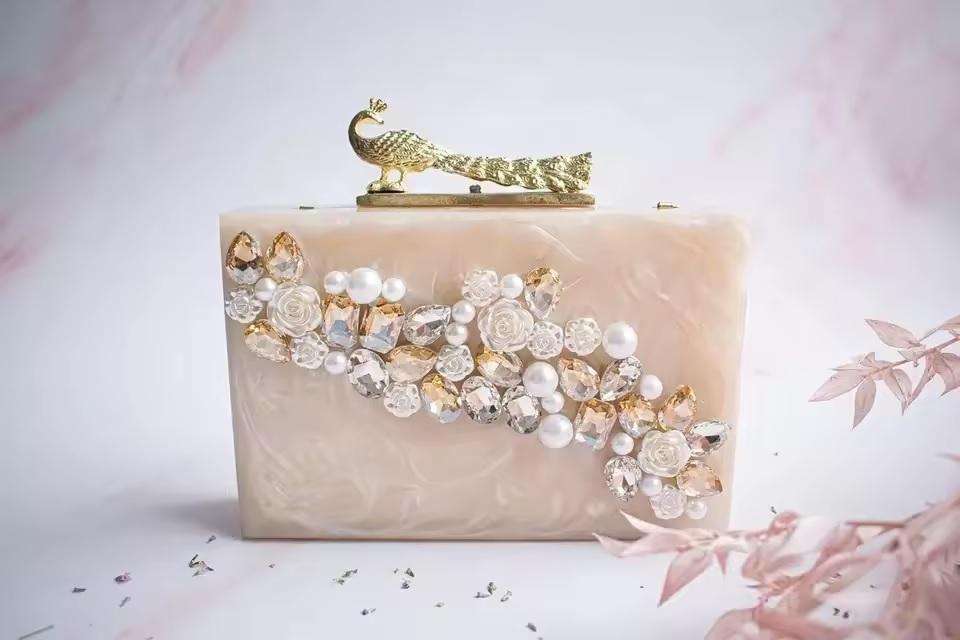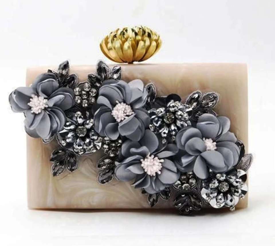 กระเป๋าคลัทช์เรซิ่นทำมือรักษ์โลก งานศิลปะประณีต ดีไซน์ทันสมัย หรูหรา กันน้ำ ประดับเพชรและดอกไม้ สีสันปรับแต่งได้