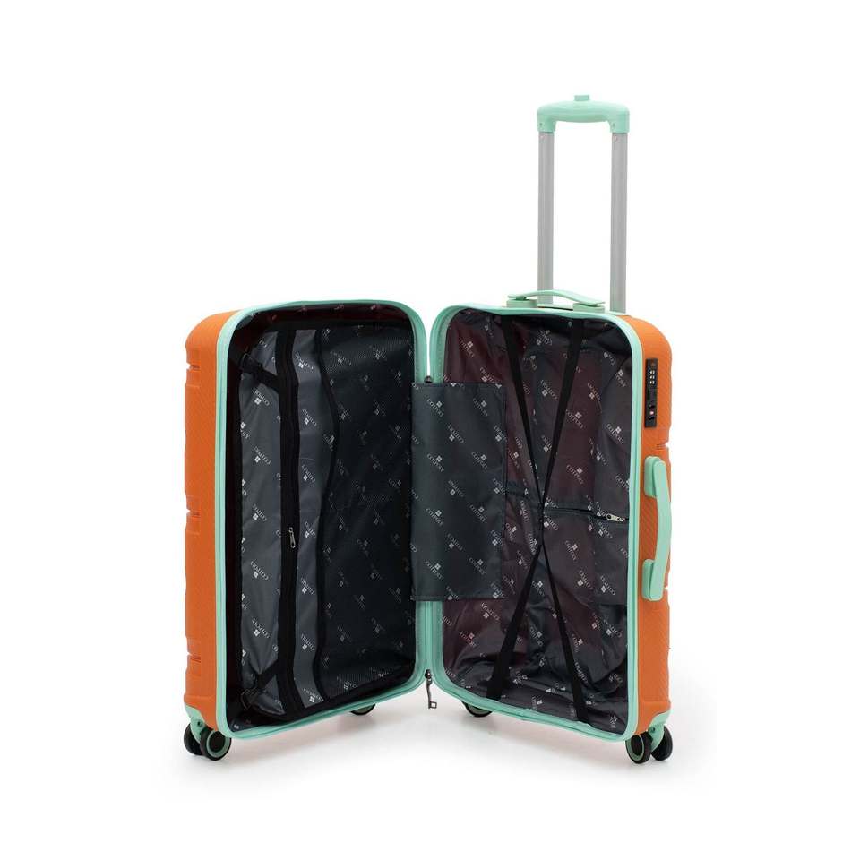 ชุดกระเป๋าเดินทางโพลีโพรพิลีน PP 2 ชิ้น Artemis Unbreakable ขนาดใหญ่และขนาดกลาง สีส้ม สำหรับผู้ใหญ่ ทั้งชายและหญิง ผลิตในตุรกี