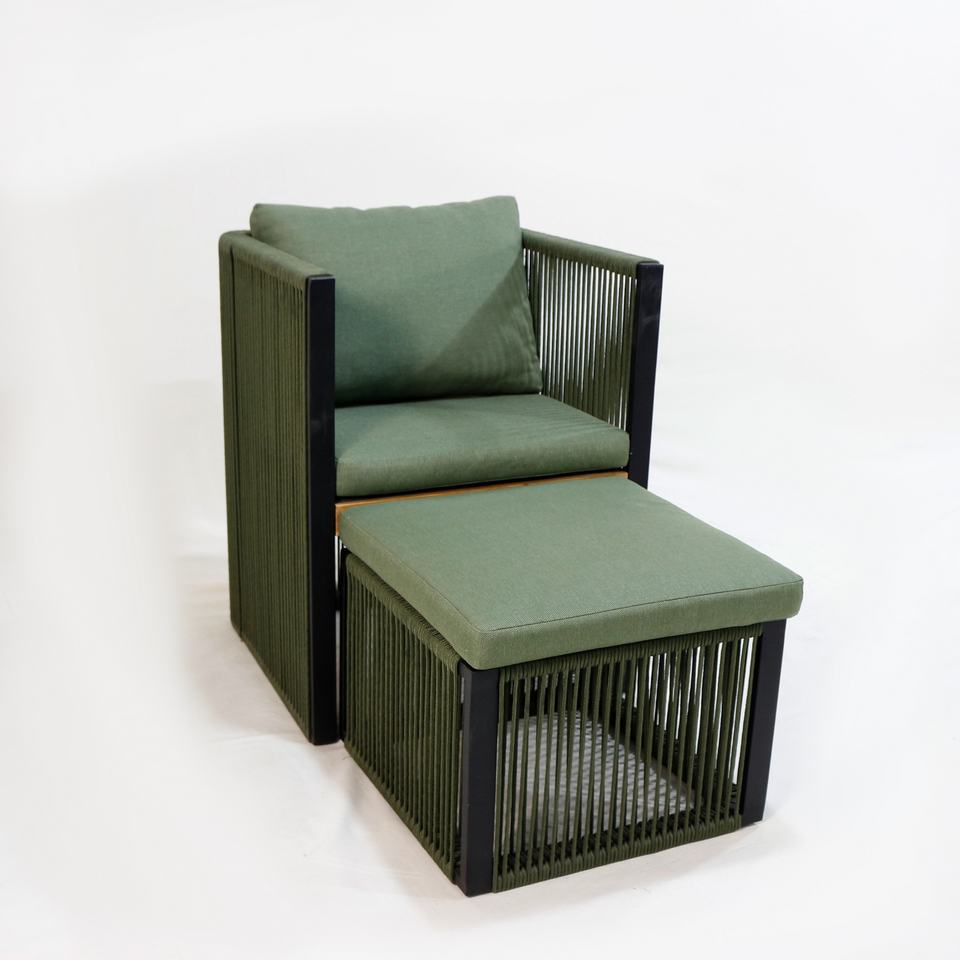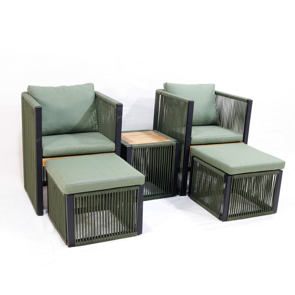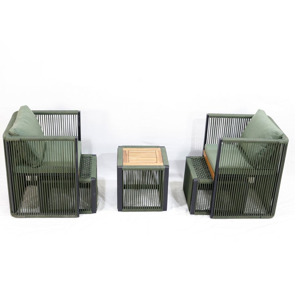 Artex Dong Thap Factory Outdoor Furniture Set with Black Iron Frame Green Rope Chairs and Square Wooden Table