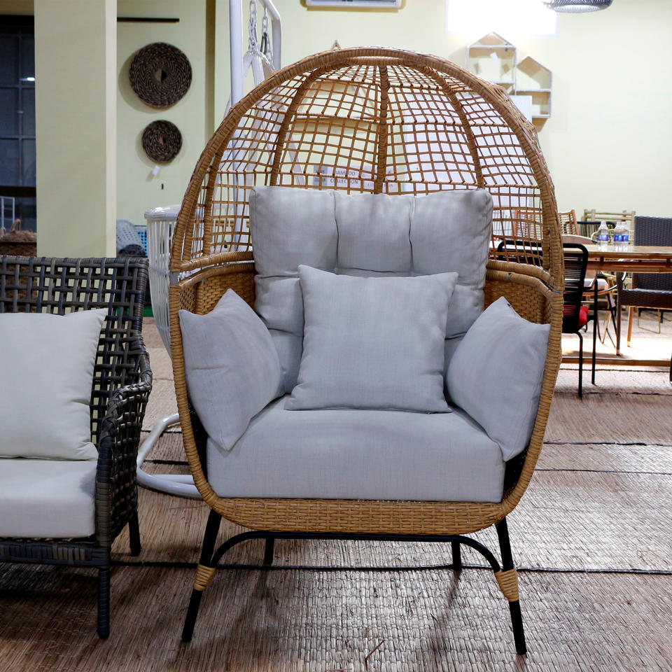 เก้าอี้พักผ่อนหวายเทียมพร้อมขาตั้งและเบาะรองนั่ง สำหรับใช้งานกลางแจ้ง ทนทาน
