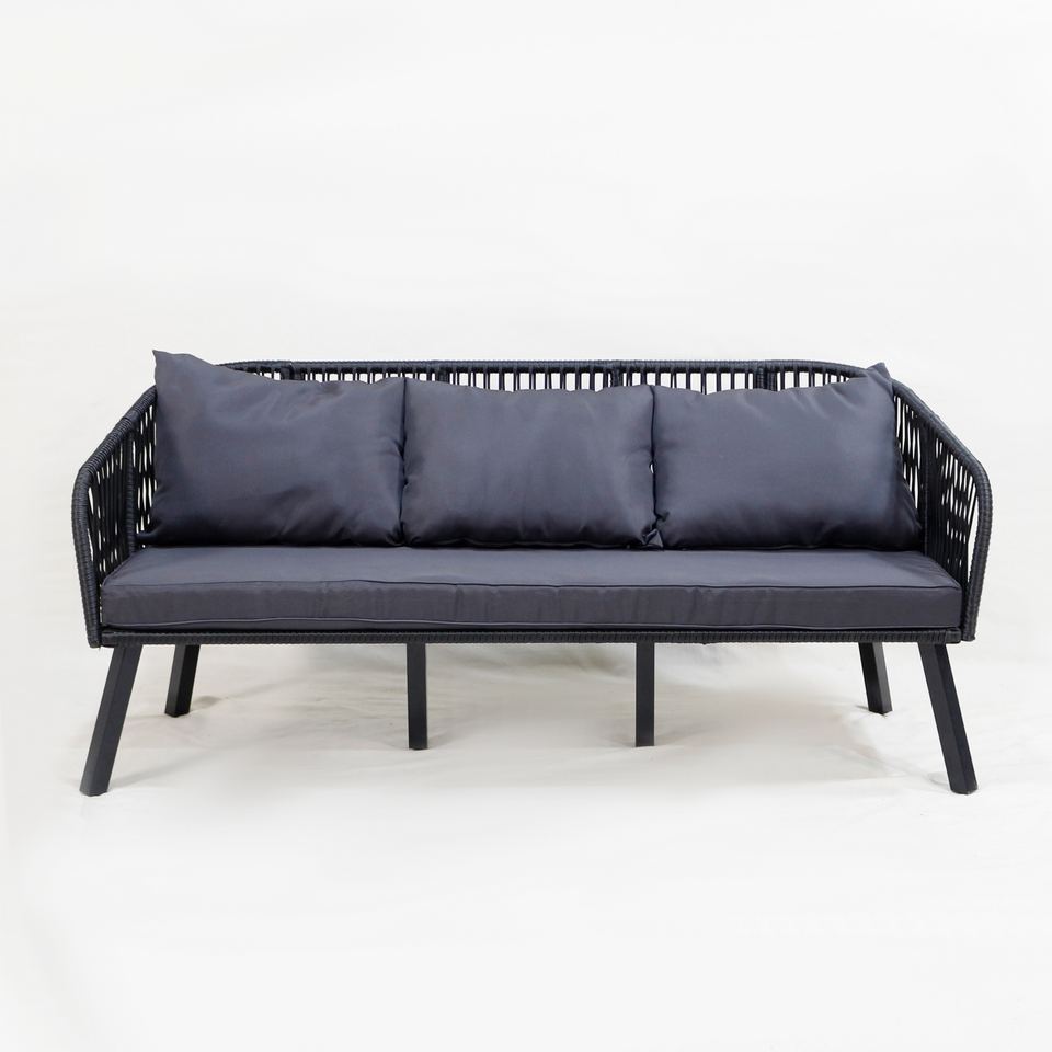 Artex Dong thap ชุดโซฟากลางแจ้งพร้อมโครงเหล็กสีดำโครงใบตองเชือกทอแบบเป็นโต๊ะไม้อัดและหมอนอิง