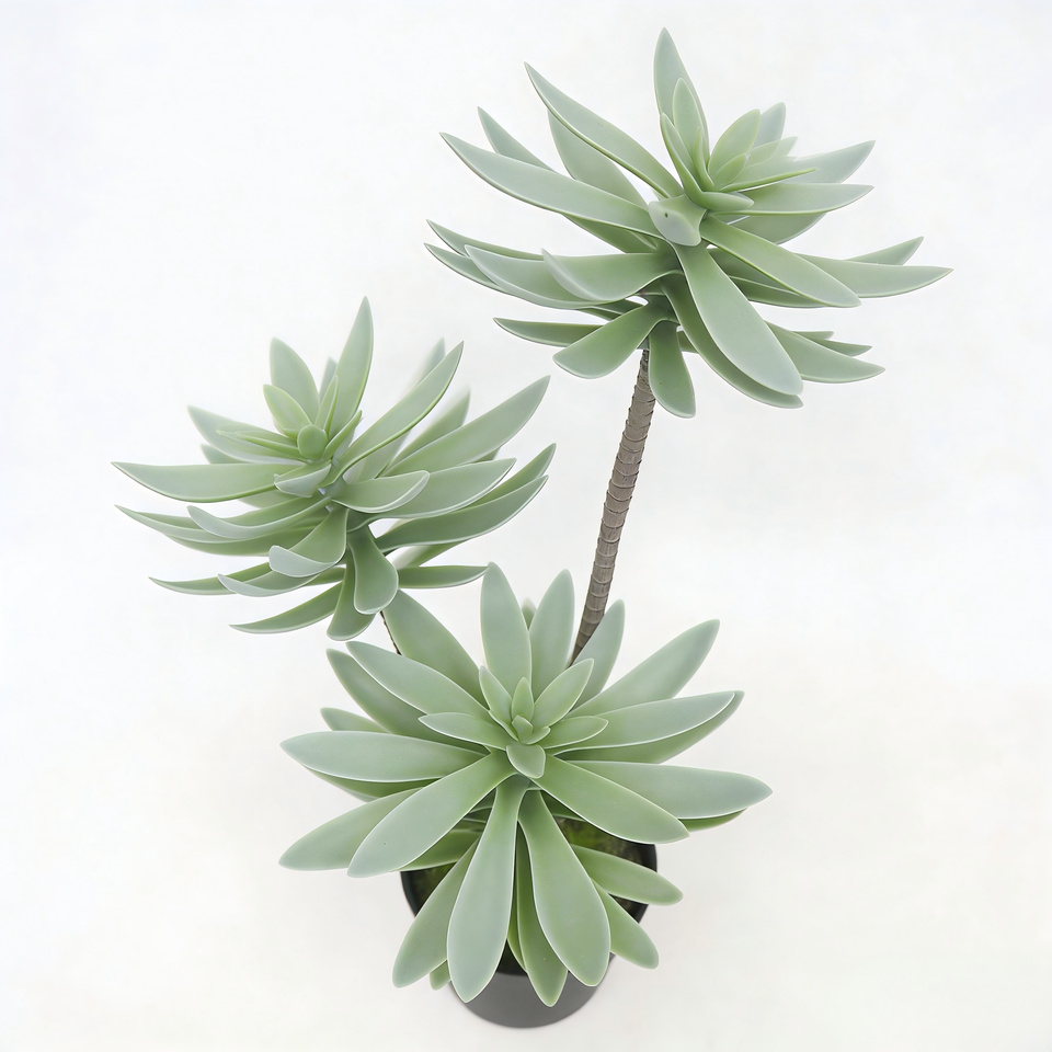 ต้นเอโอเนียมล็อตัสประดิษฐ์ 3 หัวในกระถางพลาสติกสีดำ ต้นไม้ประดิษฐ์ ต้นไม้ปลอมสำหรับตกแต่งบ้านและสวน