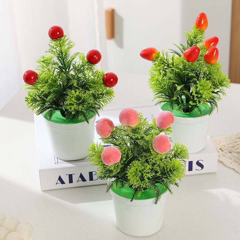 ดอกไม้ประดิษฐ์สำหรับปลูกไม้กระถางผลไม้ขนาดเล็ก, ลูกพีชแอปเปิ้ลและไม้กระถางขนาดเล็กสีเขียวสำหรับตกแต่งบ้าน