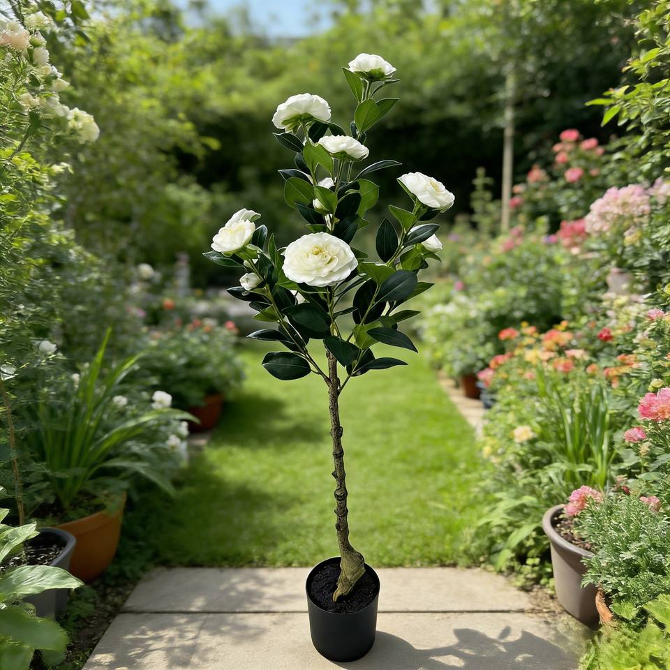 ต้นคาเมลเลียประดิษฐ์ ต้นคาเมลเลียปลอม ต้นคาเมลเลียในกระถาง ดอกไม้ประดิษฐ์
