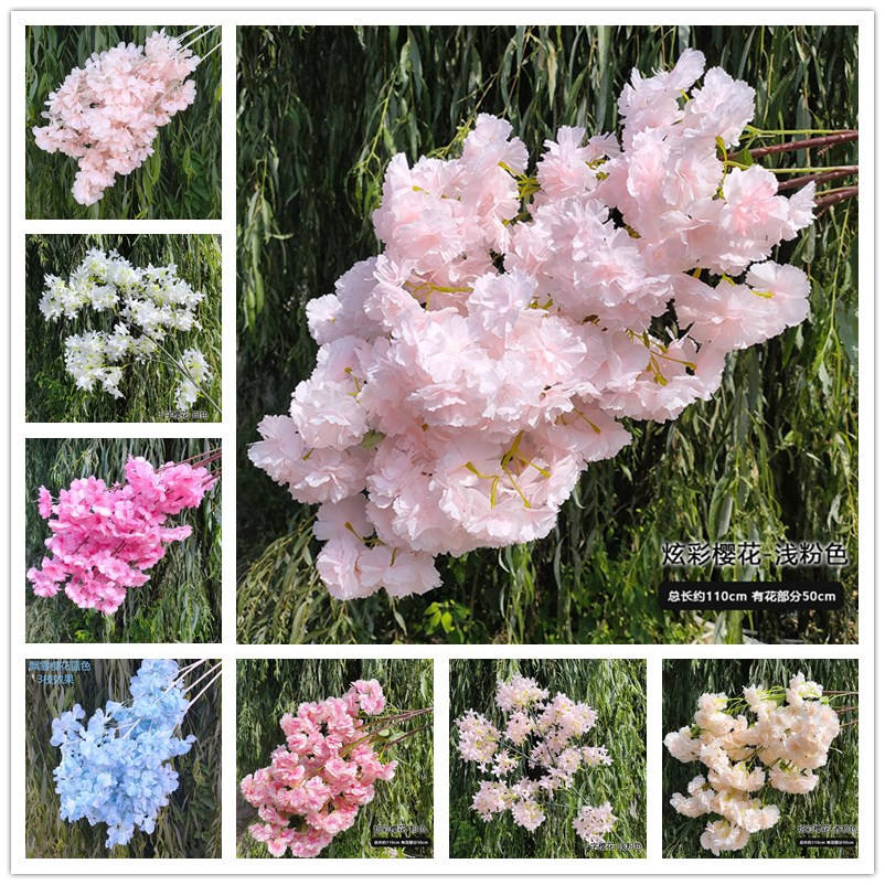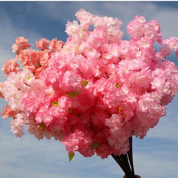 กิ่งซากุระเทียม ดอกซากุระปลอม กิ่งดอกพีช ก้านไหมยาว สำหรับตกแต่งบ้าน งานแต่งงาน แจกันบนโต๊ะ