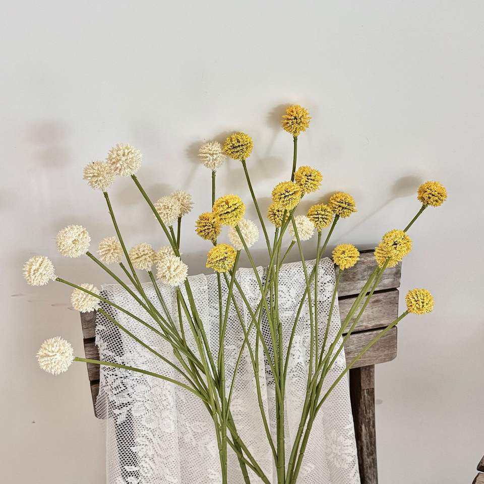 ผลไม้เกาลัดประดิษฐ์ทรงลูกบอลสีทอง ดอกแดนดิไลออนพลาสติก 5 หัว ของตกแต่งบ้าน อุปกรณ์ประกอบฉากงานแต่งงาน ดอกไม้ประดับโต๊ะห้องนั่งเล่น