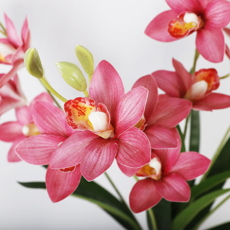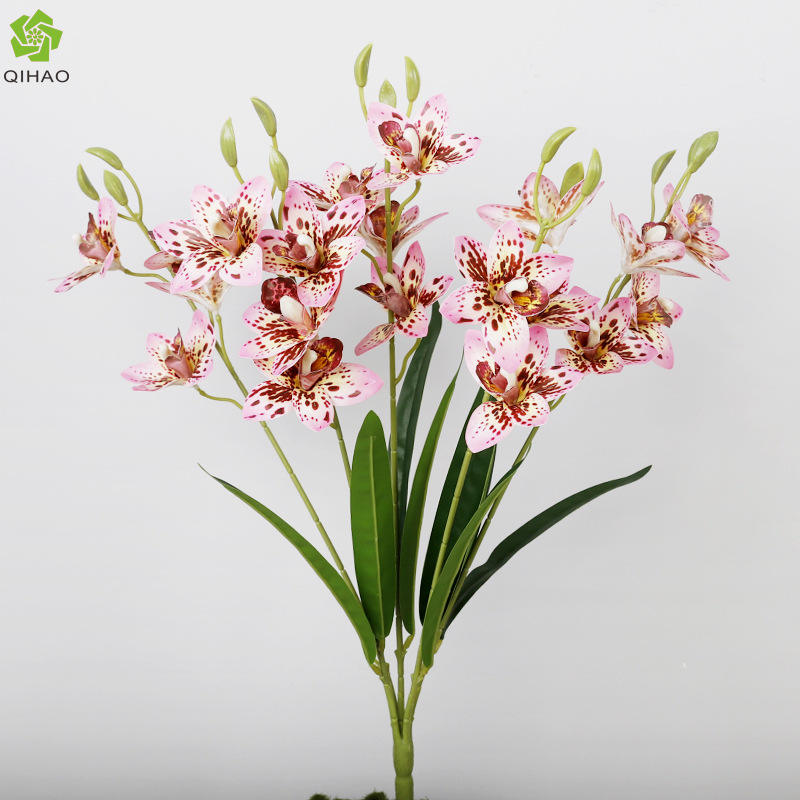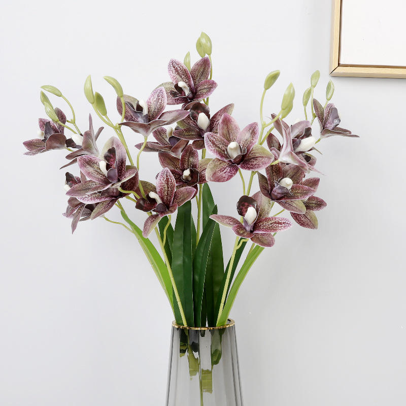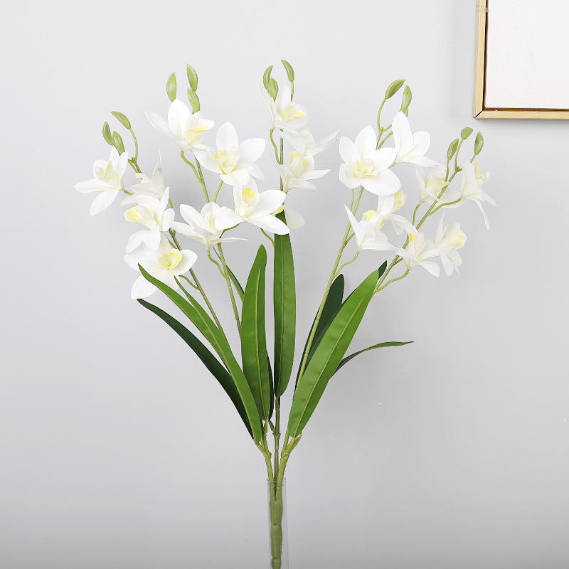 กล้วยไม้ซิมบิเดียมประดิษฐ์ 5 ก้าน ทำจากพลาสติกนิ่ม งานแฮนด์เมด ตกแต่งบ้าน อุปกรณ์ประกอบฉากงานแต่งงาน
