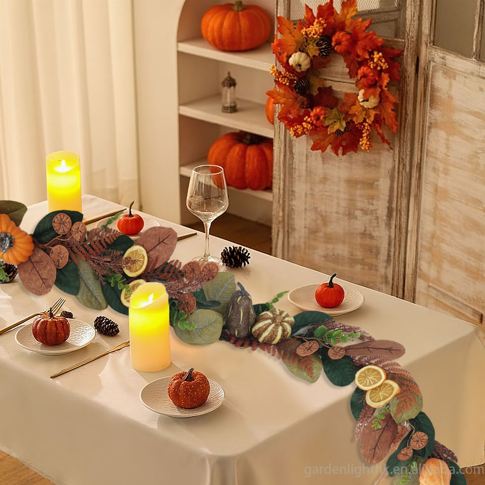 Product name:6FT Natural Woven Rattan Harvest Garland with Pumpkins & Lemons