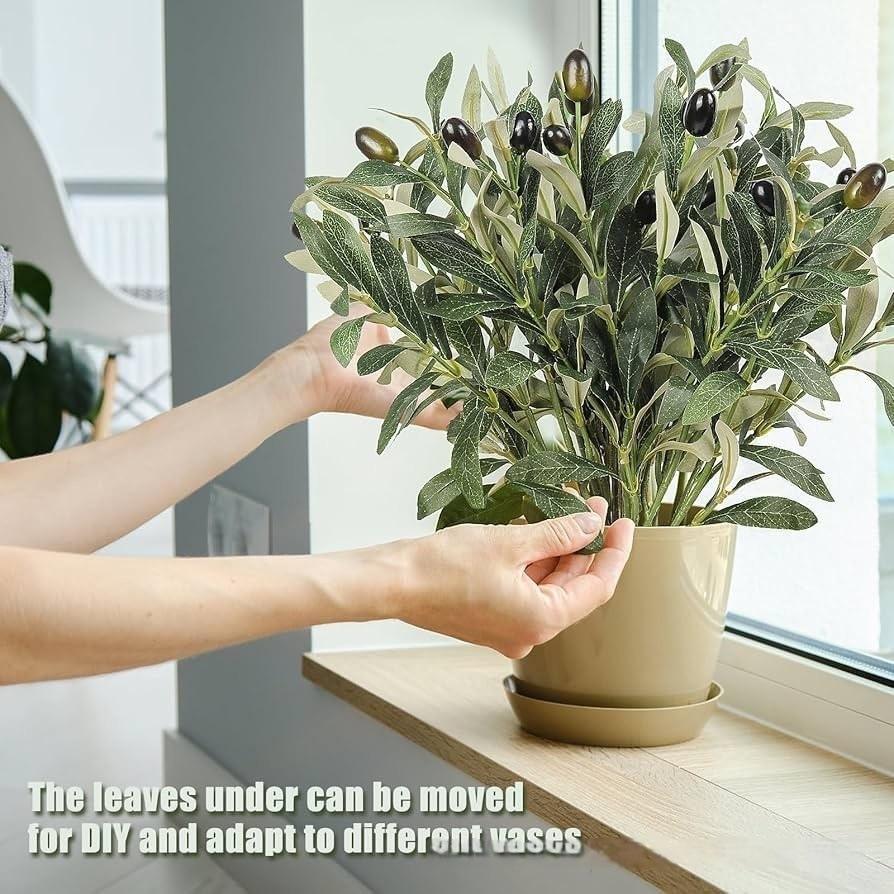 ต้นมะกอกเทียมก้านเดี่ยวทำจากผ้าไหมพร้อมใบมะกอกประดิษฐ์ผลไม้สำหรับตกแต่งบ้าน