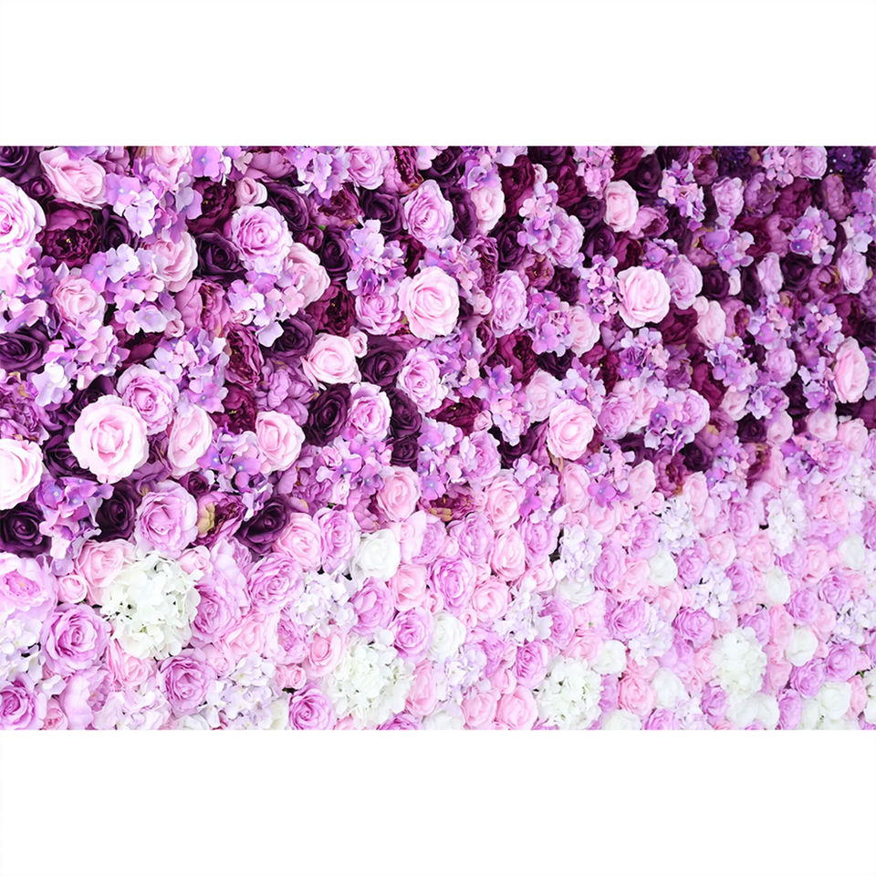 ฉากหลังดอกไม้ประดิษฐ์สีม่วงพาสชั่น ซิมโฟนี ดอกไม้หลากสีผสมลาเวนเดอร์และกุหลาบสำหรับงานแต่งงาน