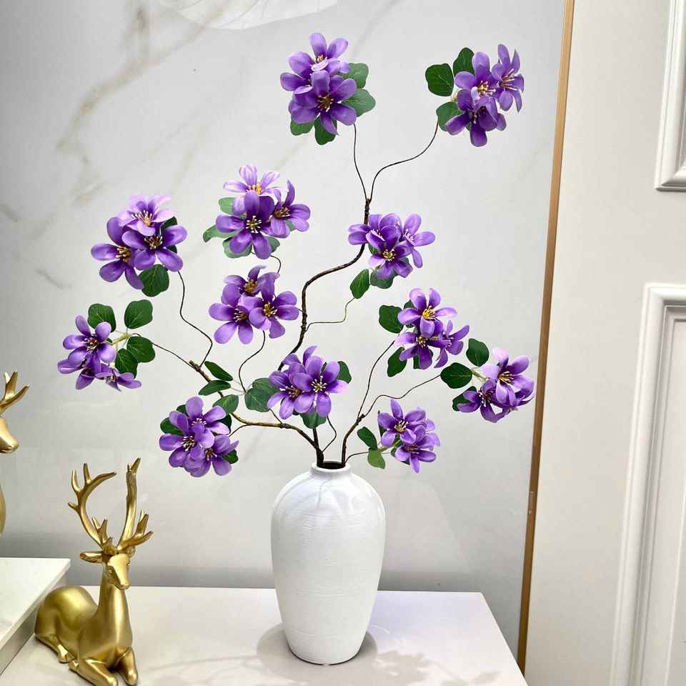 ดอกไม้ประดิษฐ์4สาขาสีขาวน้ำเงิน