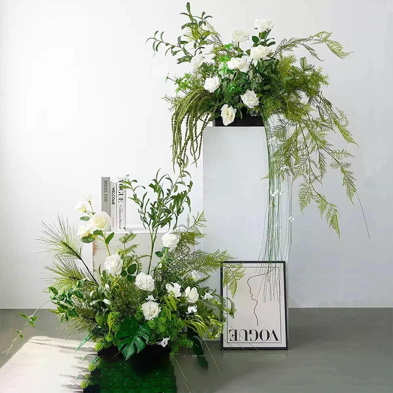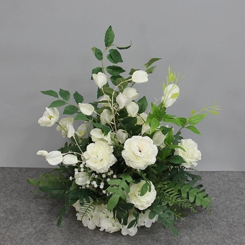 การจัดดอกไม้ประดิษฐ์ตกแต่งงานแต่งงานที่กลางพวงมาลัยลายดอกกุหลาบสีแดง