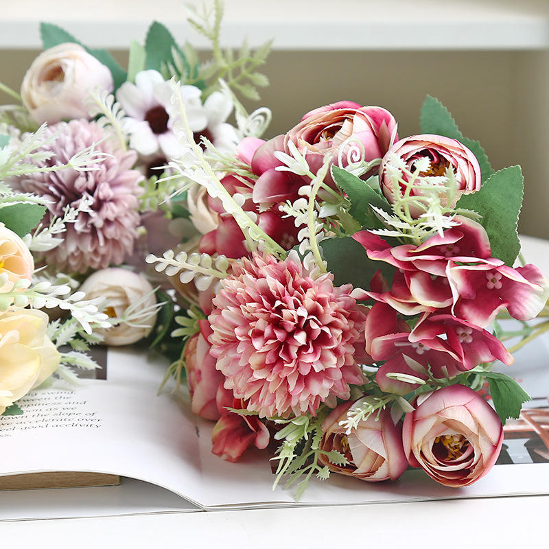ดอกไม้ประดิษฐ์ทรงกลม ดอกเบญจมาศ ดอกชา สำหรับตกแต่งโรงแรม บ้าน ถ่ายภาพ สตูดิโอ พร็อพถ่ายภาพ ช่อดอกไม้ปลอม งานศิลปะดอกไม้